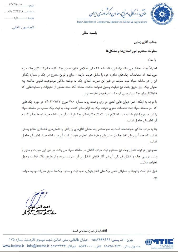 نمایشگاه بین المللی تجارت و سرمایه گذاری ایران-ترکیه از تاریخ 14 لغایت 19 بهمن 1404دی ۷, ۱۴۰۴بروشور اکسپو 2027 بلگراد – صربستاندی ۷, ۱۴۰۴اطلاع رسانی مسموع نبودن دعاوی ثبت چک در سامانه صیاد دی ۷, ۱۴۰۴ جهت دانلود پیوست کلیک کنیداشتراکمطالب مرتبطبهمن ۱۳, ۱۴۰۴تقویم نمایشگاهی فرانسه در سال 2026اطلاعات بیشتربهمن ۱۳, ۱۴۰۴نخستین دوره نظام اعتبار بخشی مدیریت آب در 28 بهمن ماه از ساعت 8 الی 12 در اتاق بازرگانی تهراناطلاعات بیشتربهمن ۱۳, ۱۴۰۴گزارشات جلسات علنی مجلس طی دو هفته اخیراطلاعات بیشتر