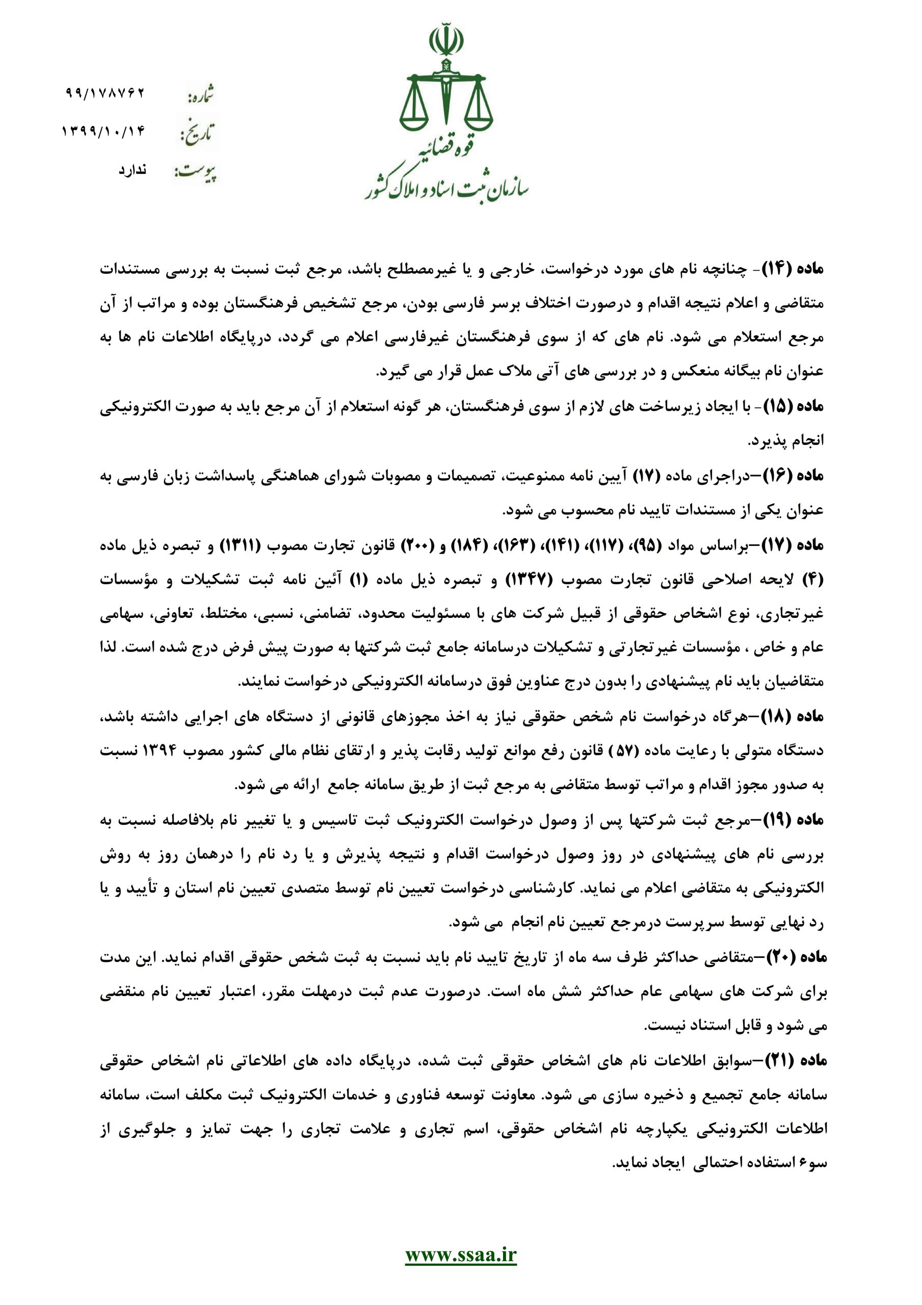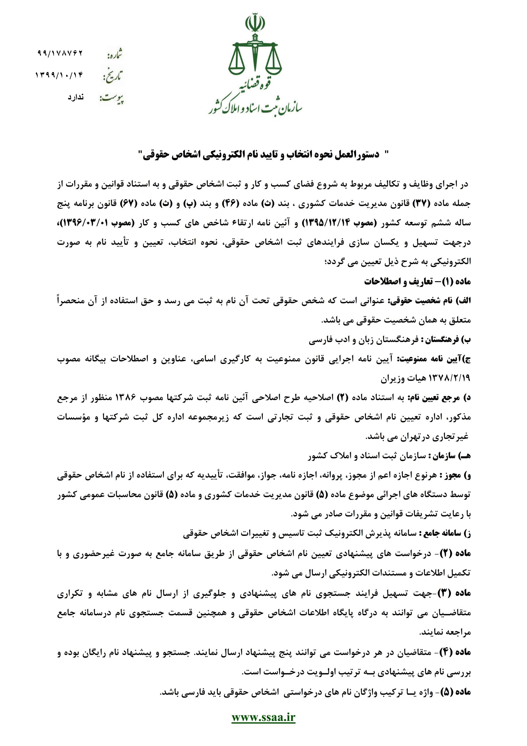 دستورالعمل نحوه انتخاب و تائید نام الکترونیکی اشخاص حقوقی
