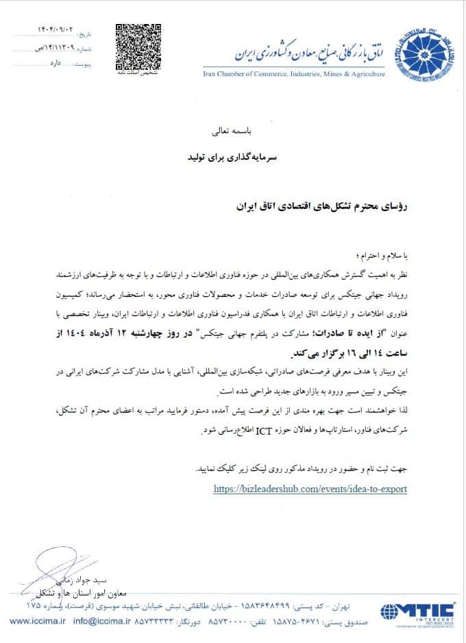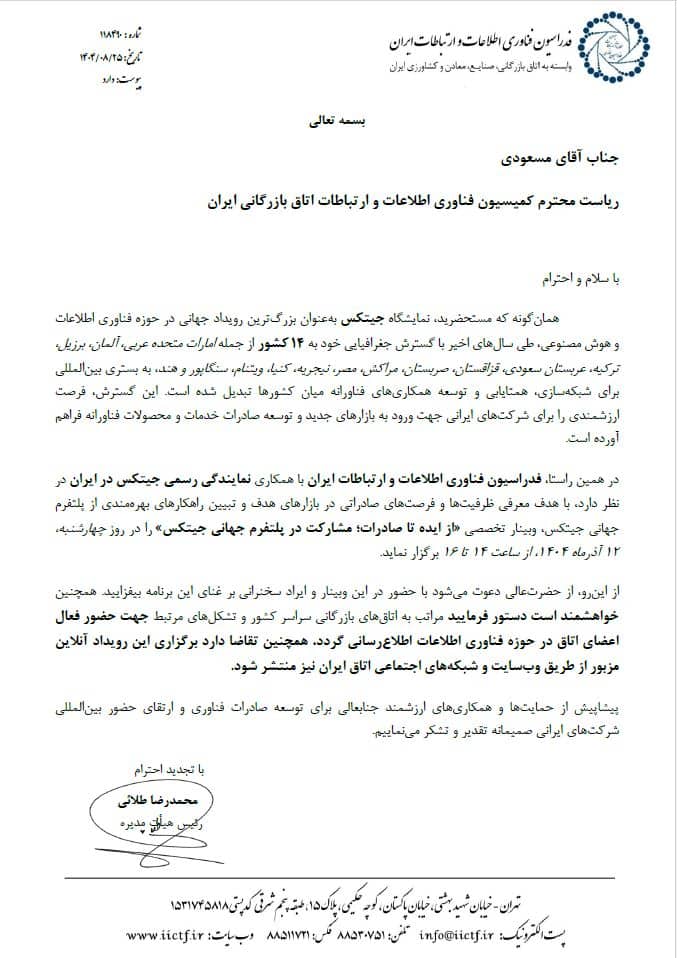 وبینار تخصصی با عنوان از ایده تا صادرات با مشارکت در پلتفرم جهانی جیتکس
