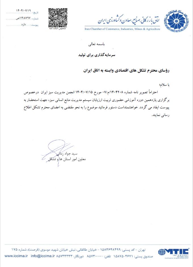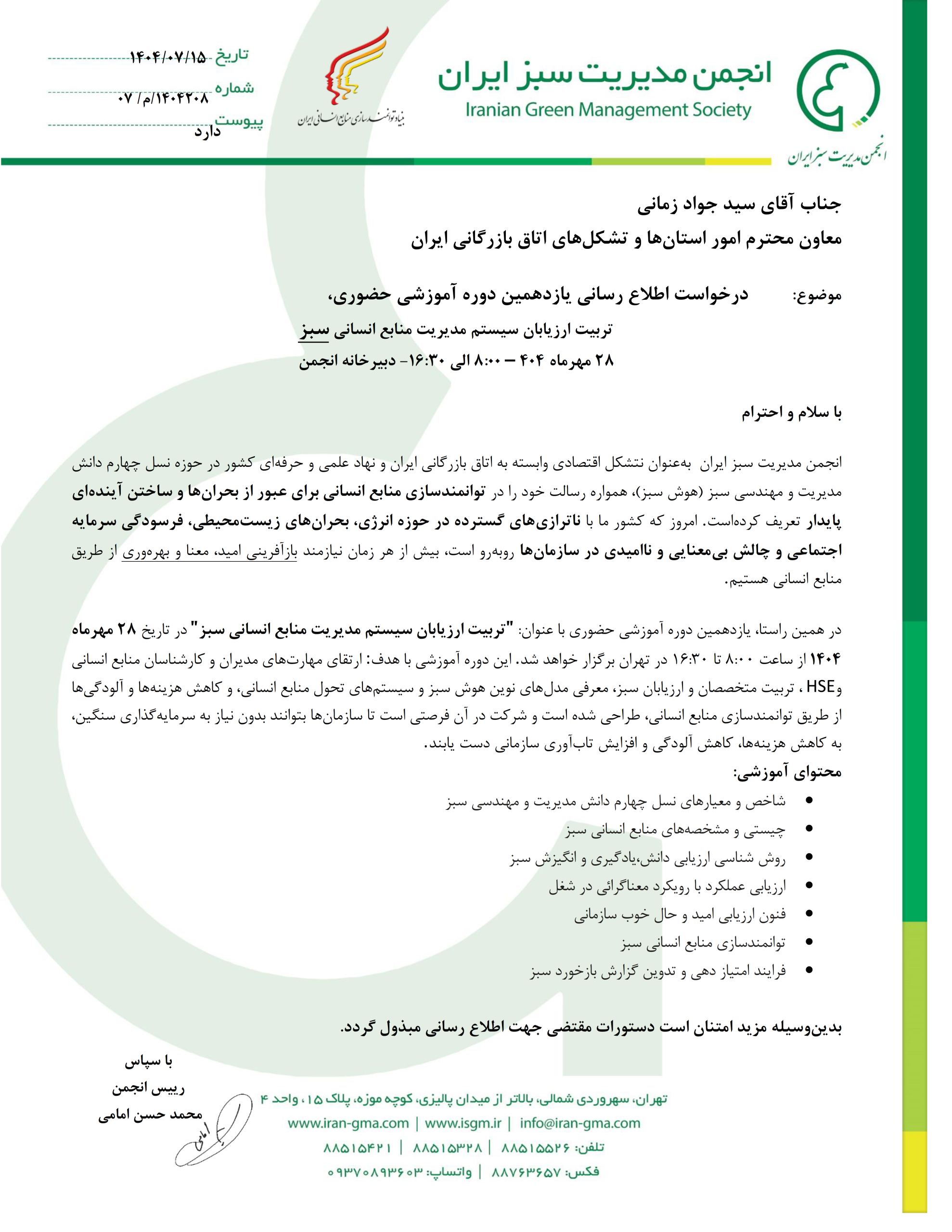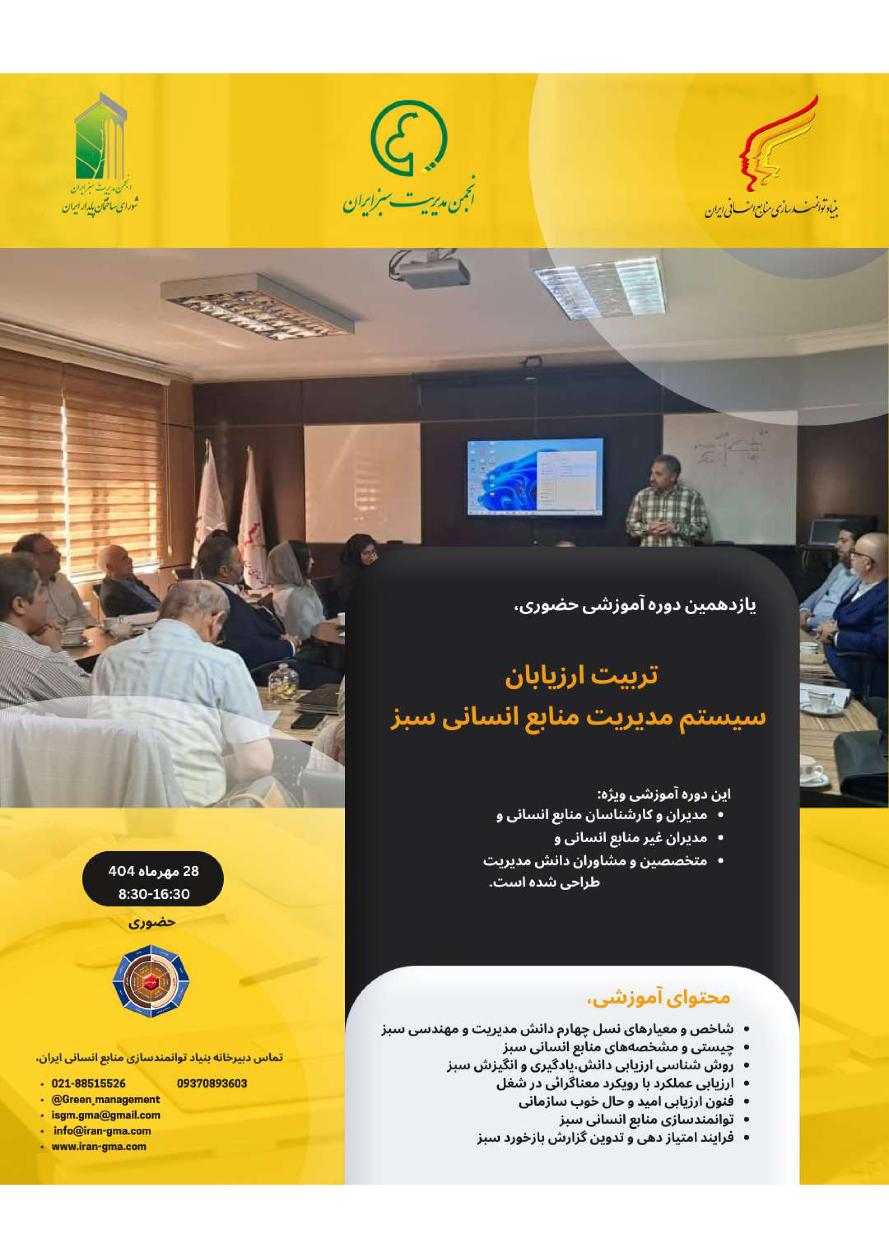 یازدهمین دوره آموزشی حضوری تربیت ارزیابان سیستم مدیریت منابع انسانی سبز